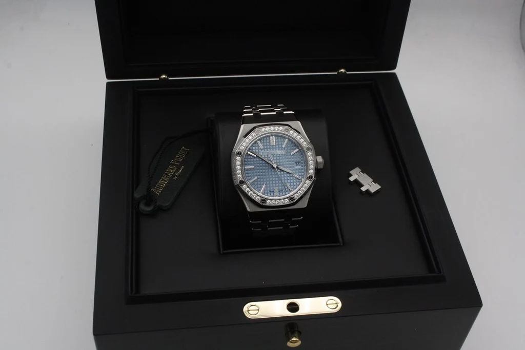- Model: Royal Oak Steel & Light Blue Dial with Diamonds