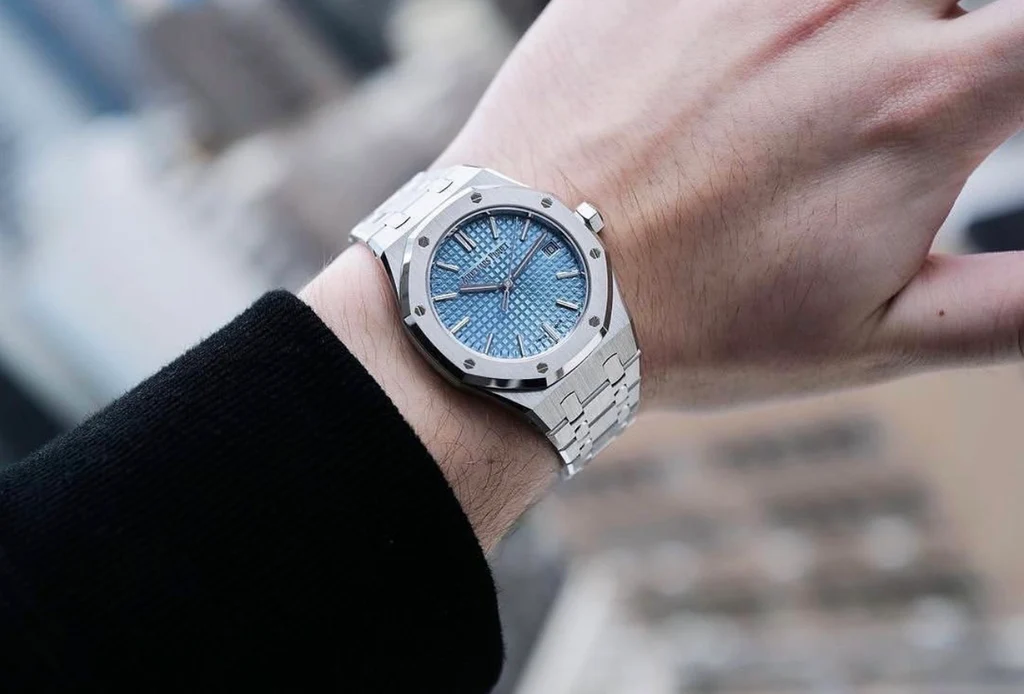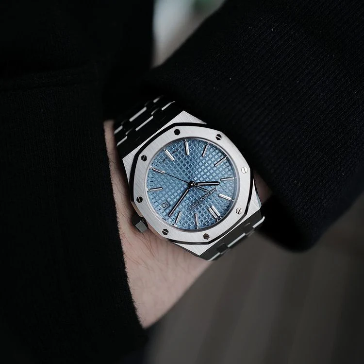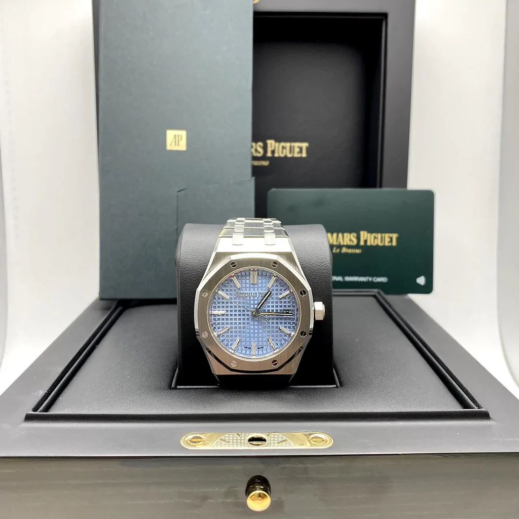 • Audemars Piguet Royal Oak 50th Anniversary Light Blue Dial Silver Steel Strap Men's Watch - 15550ST.OO.1356ST.04