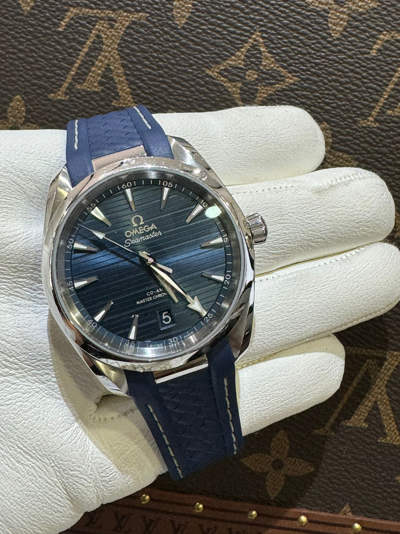 Presented on a blue structured rubber strap with grey stitching, this timepiece is powered by the OMEGA Co-Axial Master Chronometer calibre 8900, certified at the industry’s highest standard by the Swiss Federal Institute of Metrology (METAS).