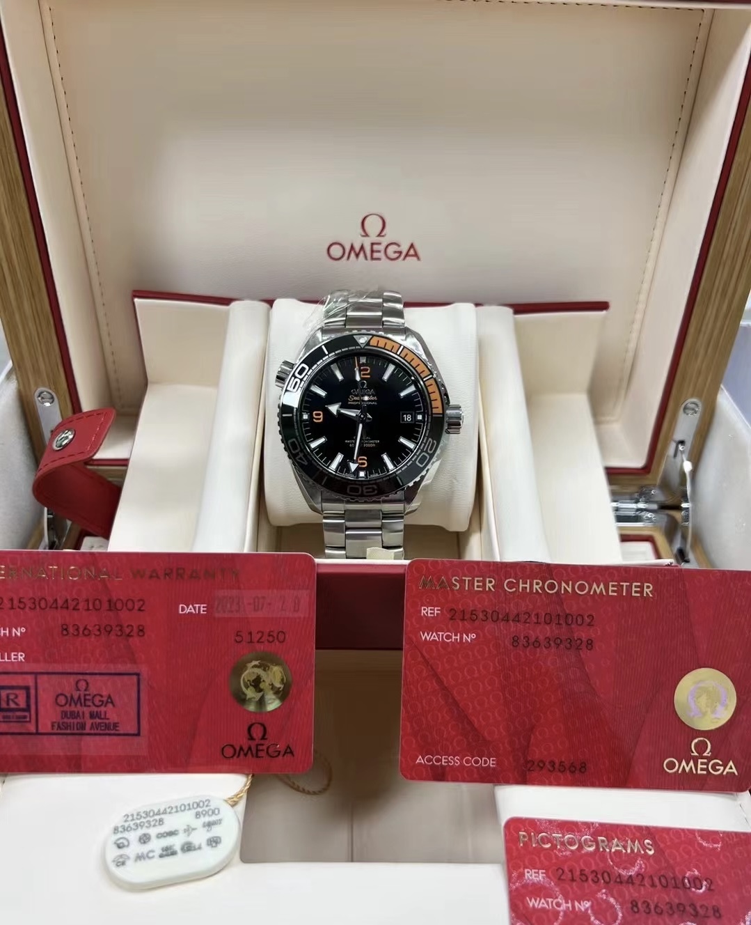 The OMEGA Seamaster Planet Ocean 600M Master Chronometer is water resistant to 600 metres / 2000 feet / 60 bar, and has a helium-escape valve. The OMEGA Master Chronometer calibre 8900 at the heart of this timepiece can be seen through the transparent caseback. To achieve Master Chronometer status, it has passed the 8 rigorous tests set by METAS (The Swiss Federal Institute of Metrology).