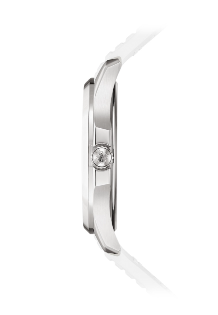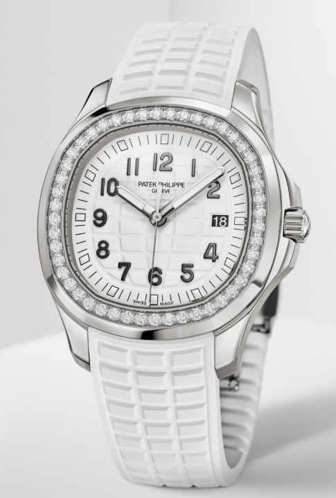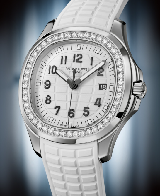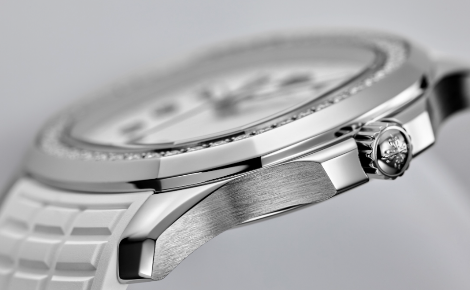 Patek Philippe Aquanaut Luce series introduces a new design based on the classic stainless steel quartz watch. The new watch has a diameter of 38.8 mm and is equipped with a one-piece composite material strap. This reinterpreted modern casual fashion style watch is equipped with a beautiful and elegant matte white dial and a strap of the same color. Waterproof coefficient is 30 meters, and the rounded octagonal case is polished and satin-finished. The bezel is inlaid with 48 diamonds (approximately 1.11 carats). It uses Patek Philippe's patented folding clasp, which is fixed with four independent buckles.