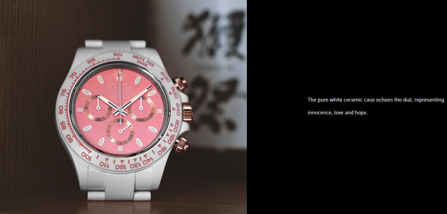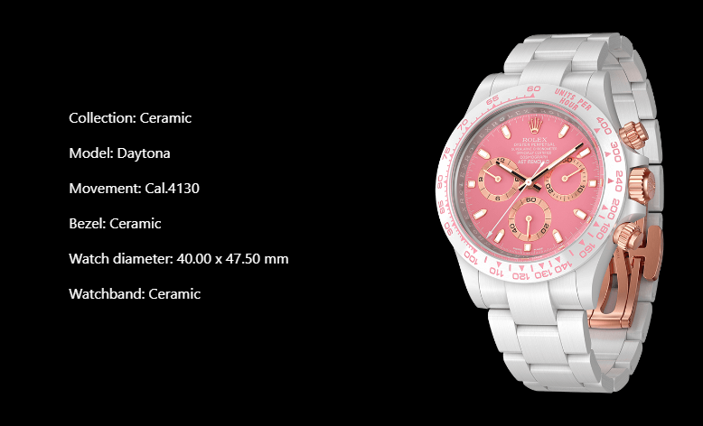 In order to create a unified and comfortable visual experience, the hour markers, hour and minute hands, sub-dials, side crowns and chronograph buttons of the watch dial are all made of rose gold to echo them.