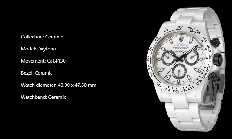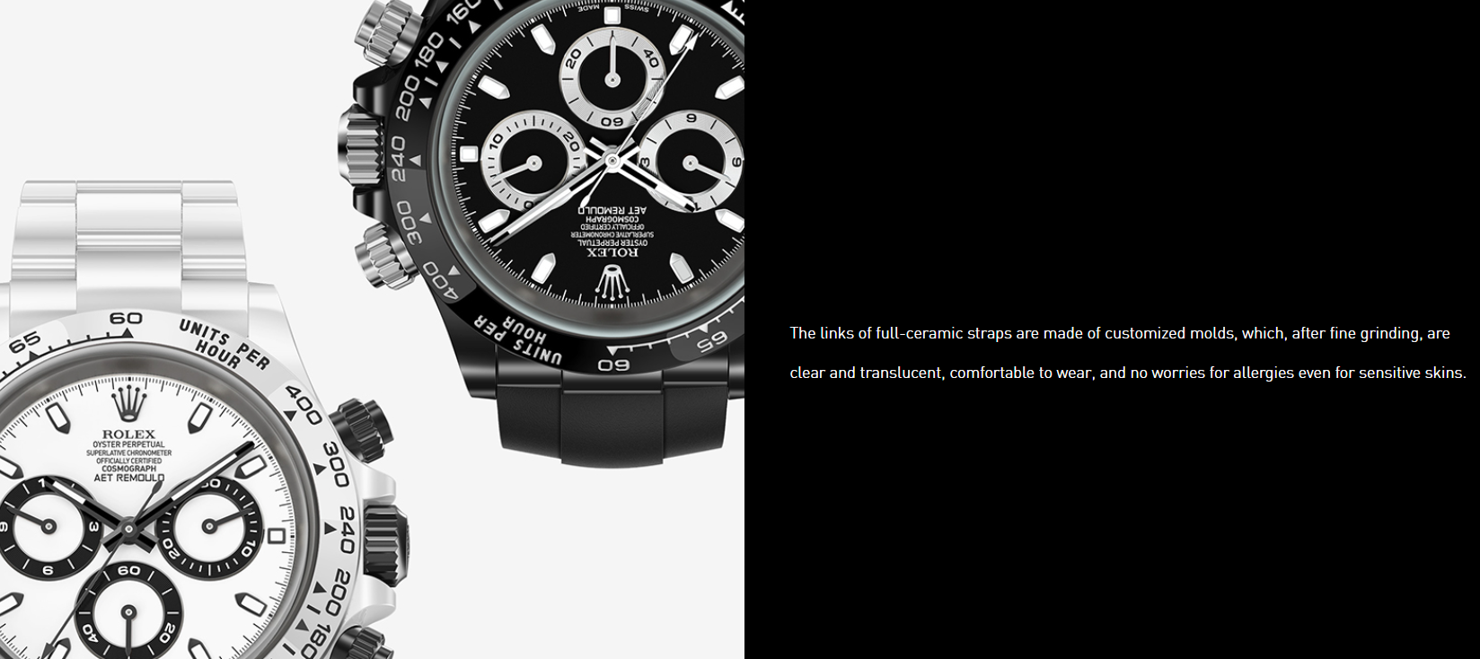 No extra decoration, just the watch itself. High requirements on the design and texture of the material has been raised. Solid color like black and white is particularly fashionable, smooth and flawless case surface is made of high-tech ceramics, and the natural luster provides comfortable visual enjoyment.