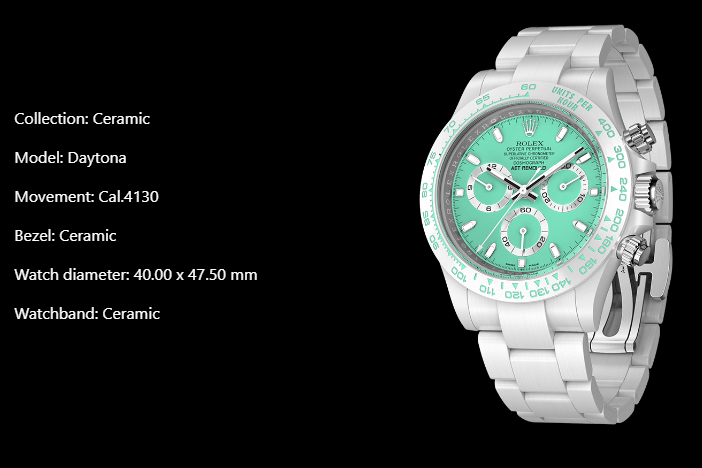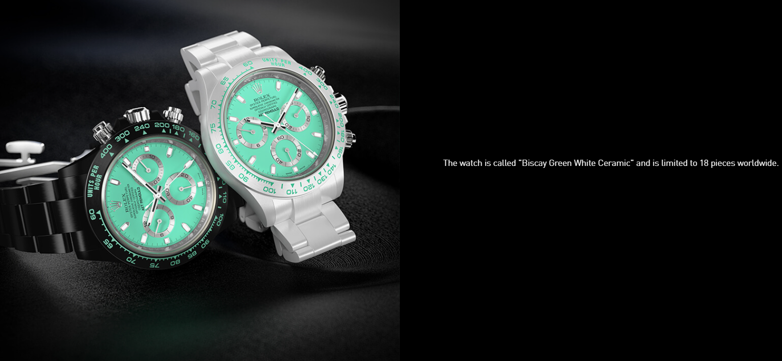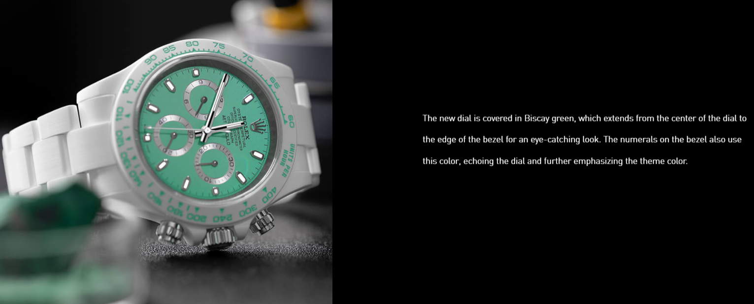 • This product is out of stock. If you need to purchase it, please contact us to customize it.Rolex Daytona BISCAY GREEN WHITE CERAMIC