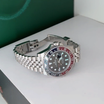 Unworn Rolex GMT-Master II Pepsi 40mm watch featuring a brushed and polished 904L Oystersteel stainless steel case. They have a Black dial with luminous Mercedes-logo hands and Breguet-style shape hands.? The arrow-tipped red GMT hand circles the dial every 24 hours and allows tracking of a second-time zone.? Broad hands as well hour markers in simple shapes �C triangles, circles, rectangles �C are filled with a blue luminescent material emitting a long-lasting glow, which ensures excellent readability. Minute markers around the outer rim. A scratch-resistant sapphire crystal with Cyclops lens over the date protects the dial. Date display at the 3 o��clock position. Monobloc middle case, screw-down case back. Polished Oystersteel screw-down crown with Rolex's patented "Triplock" triple waterproofness system. A distinctive blue and red bidirectional rotating 24-hour bezel with Cerachrom insert in ceramic and engraved with numerals and graduations. The movement is mechanical self-winding, Rolex in-house caliber 3285 with 31 jewels and 70 hours of power reserve. The watch is presented on a brushed and polished 904L Oystersteel stainless steel Oyster bracelet of flat three-piece links with a folding Oysterlock safety clasp with Easylink 5 mm comfort extension link. The water resistance is up to 100m/330ft. The Watch comes complete with store papers and a Rolex box. Will include 3 years Store Warranty.