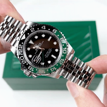 The case is stainless steel with brushed lugs and high-polish finished sides. The bezel is steel with a black and?green 24-hour ceramic insert. Stainless steel left sided crown and case back are screw-down to keep the watch water-resistant. It features an oyster bracelet where?links are polished down the middle and brushed on either side.