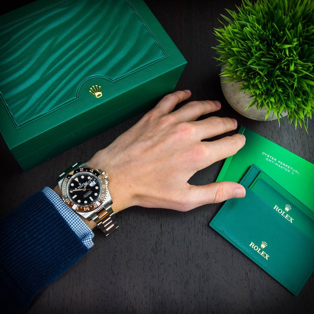 The stunning Rolex GMT-Master II 'Root Beer', singlehandedly redefining the standard for bi metal watches! An instant favourite when introduced at Basel world 2019, the Root Beer is sure to quickly become a modern classic. Based on the original Rolex GMT-Master II design, this watch is built in a 40mm Oyster case with a bi directional rotatable bezel enabling calculation of time in a 3rd time zone when read in conjunction with the extra GMT hand.