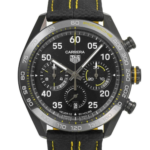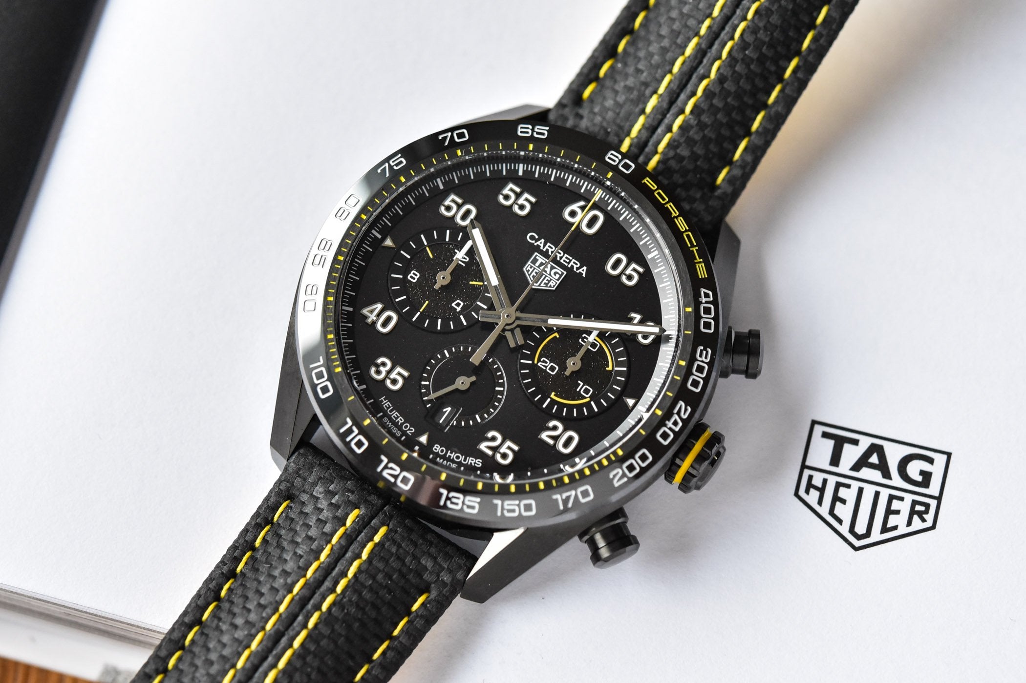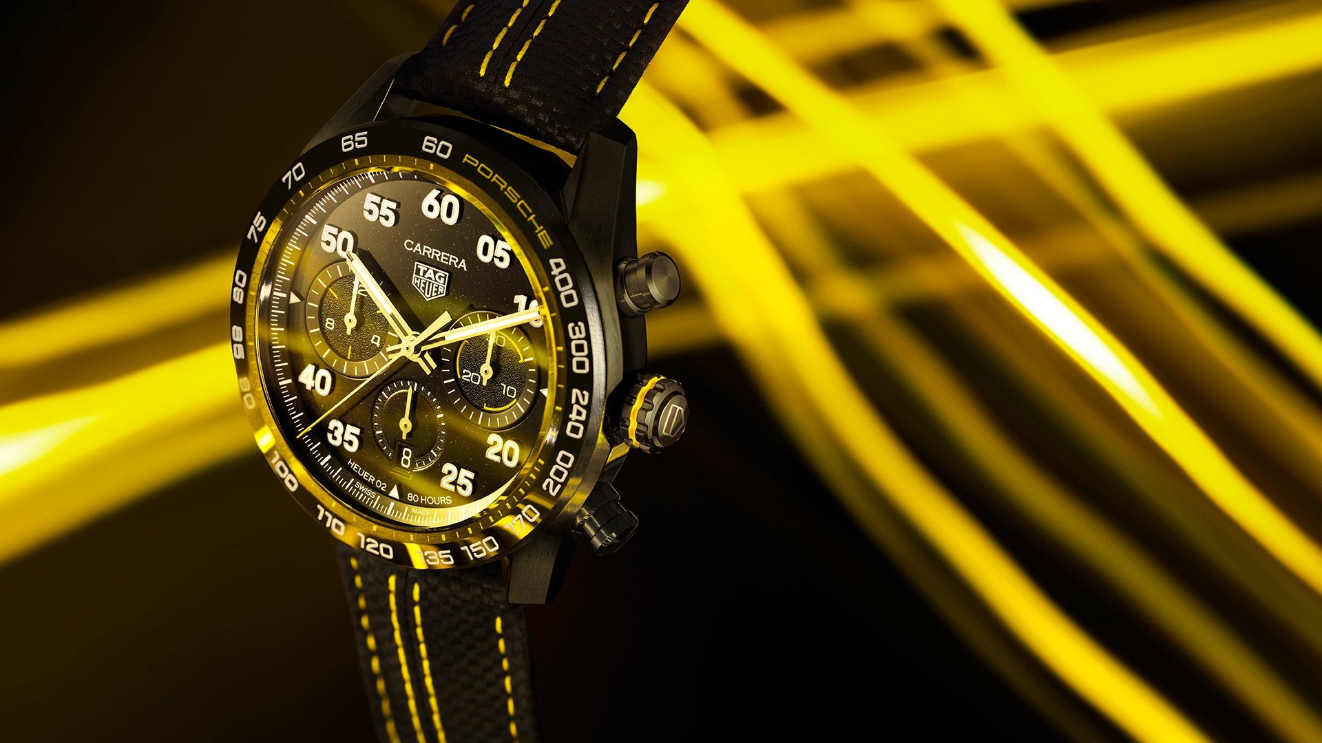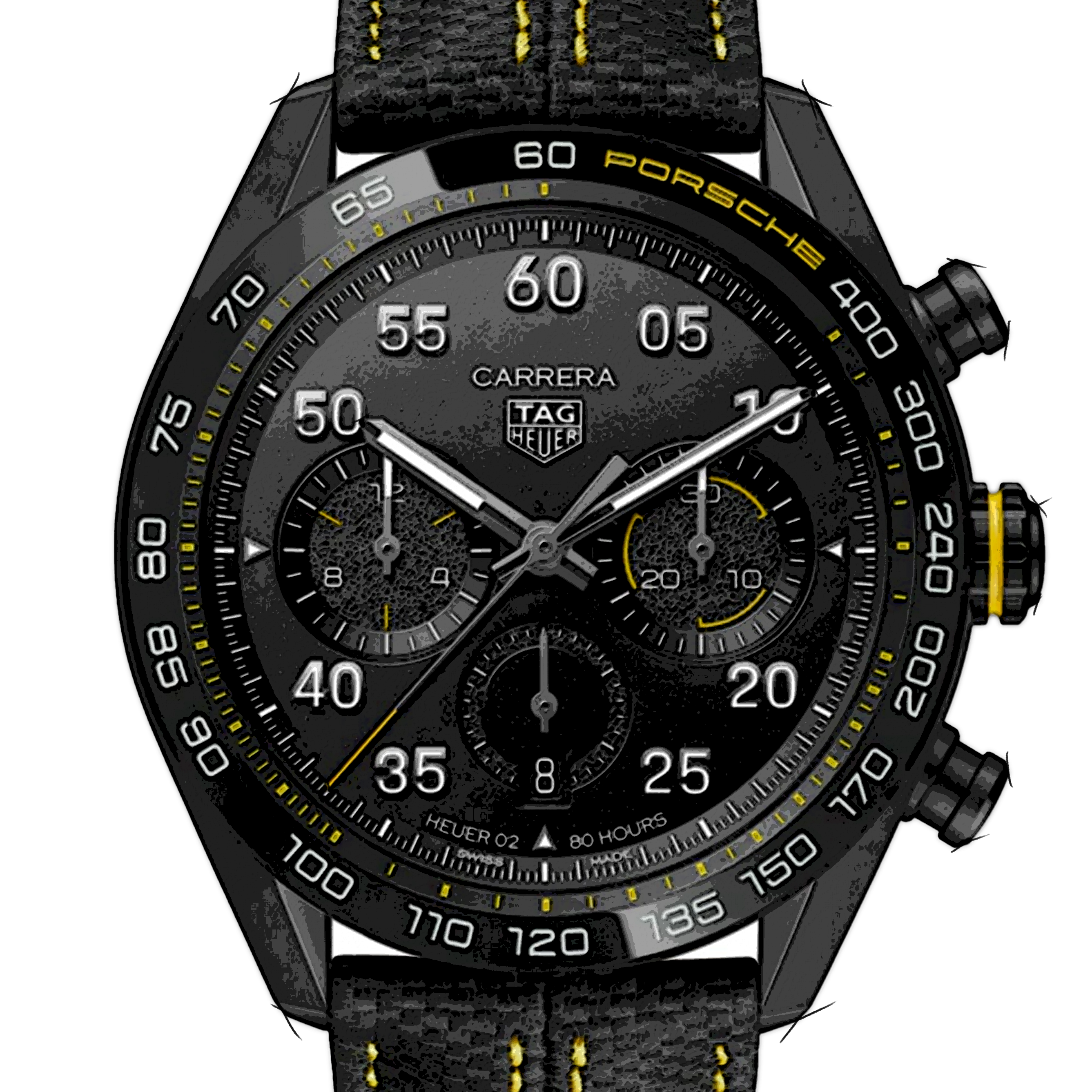 泰格豪雅卡莱拉保时捷限量版诞生于两个品牌之间的标志性合作,体现了创新、声望和引人注目的奢华。 独特的闪亮黑色表盘外观大胆,灵感源自 保时捷独特的车身。