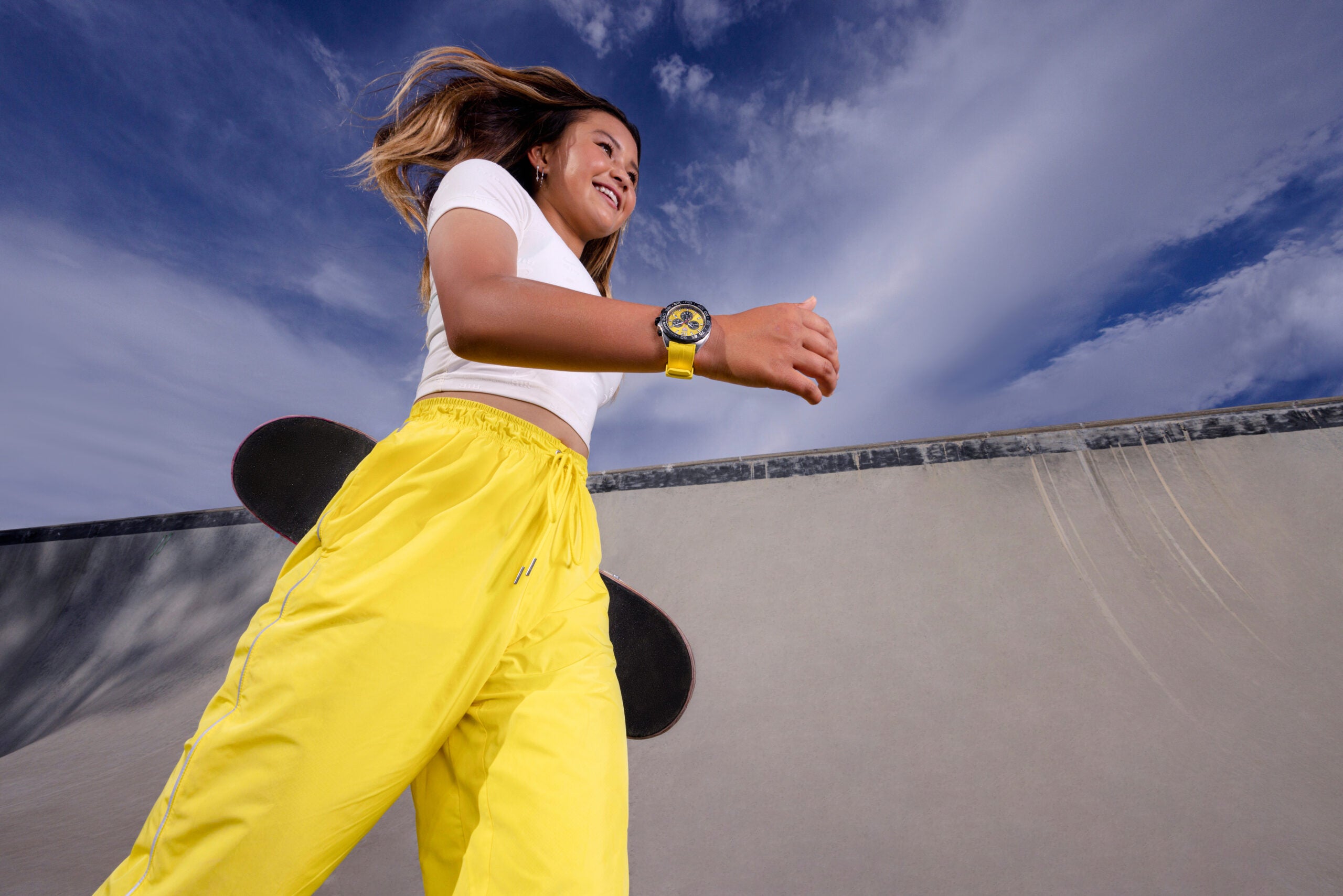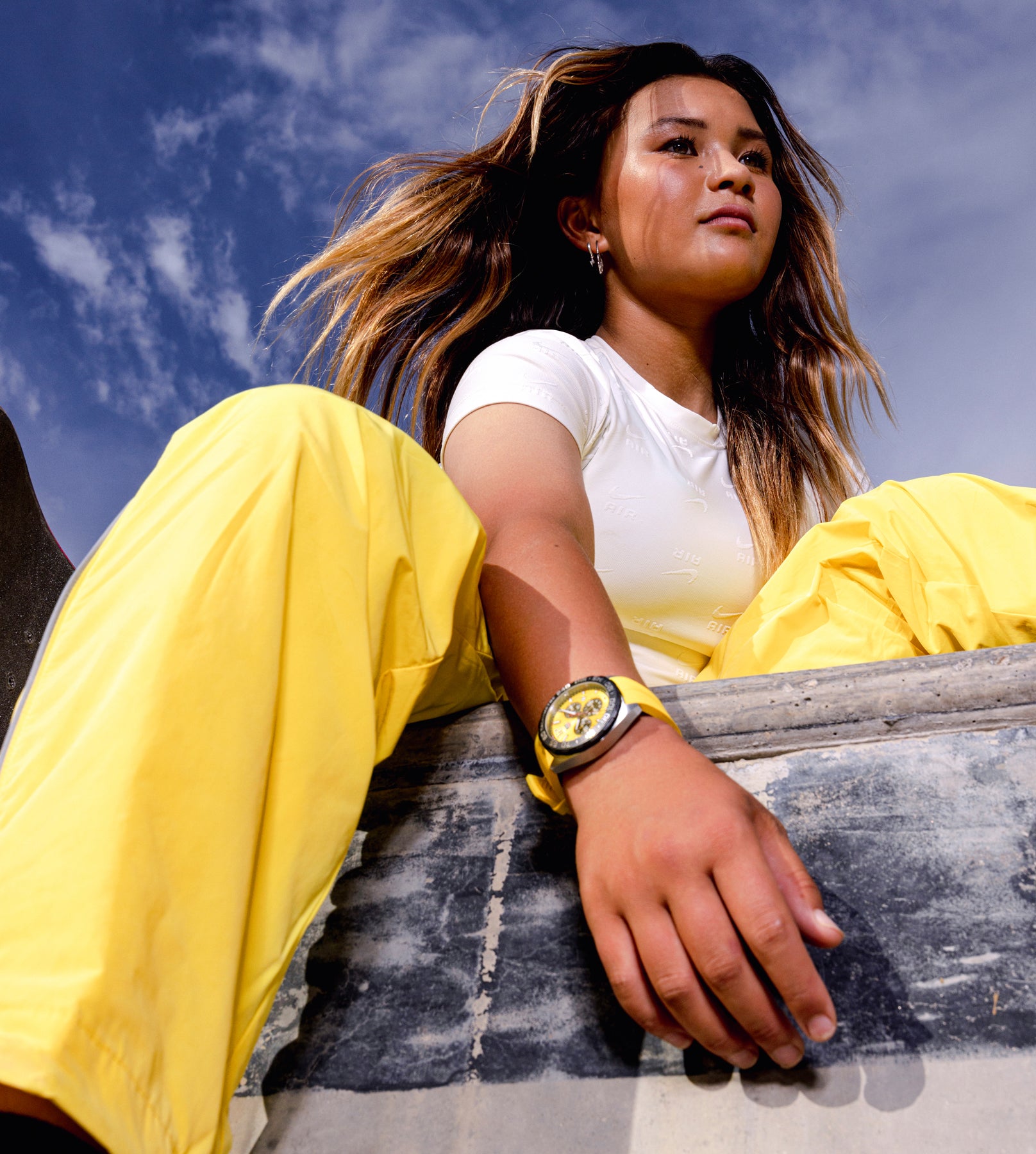 醒目的黄色太阳纹拉丝表盘和高品质黄色橡胶表带脱颖而出。 非常适合运动外观和不容错过的声明。