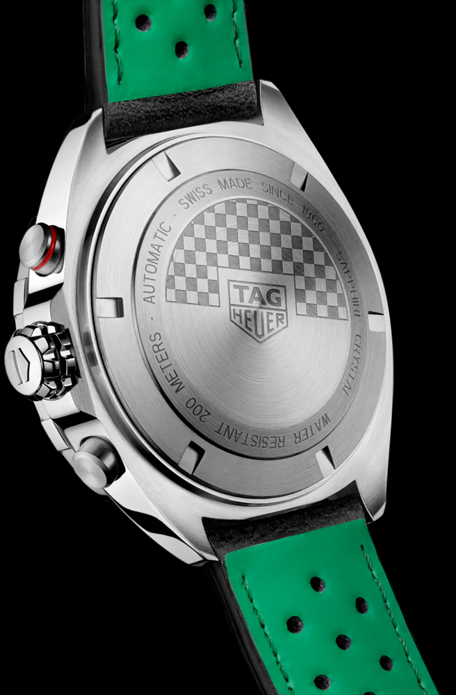 The green dial looks great. “Racing Green” dates back to the early 20th century, when racing cars could be identified by their national colors. This color has since become the iconic color of motorsport.